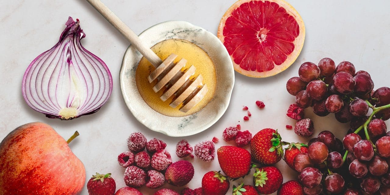 Quercetin is a bitter-tasting flavonoid found in almost all vascular plants, particularly capers, kale, apples, and red onions. It’s also in red wine.